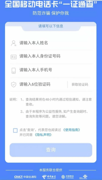 为此,工业和信息化部推出全国移动电话卡“一证通查”便民服务,用户可凭身份证查询名下登记电话卡的数量。